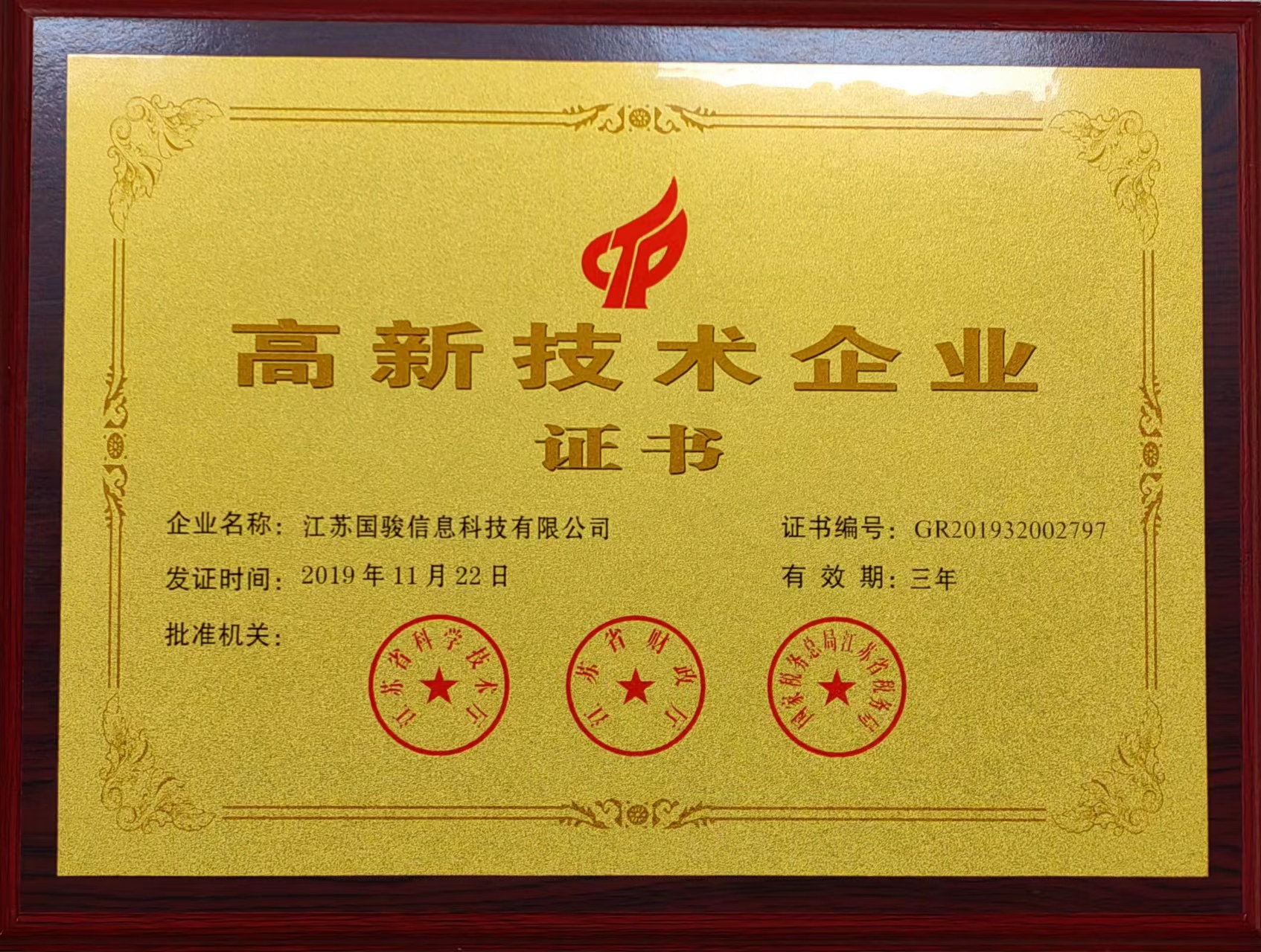 江蘇國駿已2次通過國家高新技術(shù)企業(yè)認(rèn)定(2019-2022年、2023-2026年),江蘇省軟件企業(yè)認(rèn)定、江蘇省民營科技企業(yè)認(rèn)定、江蘇省科技型中小企業(yè)認(rèn)定、CISP信息安全專業(yè)人員認(rèn)證。江蘇國駿是“云御網(wǎng)安”商標(biāo)的持有人,擁有20余項(xiàng)軟件著作權(quán)證書。